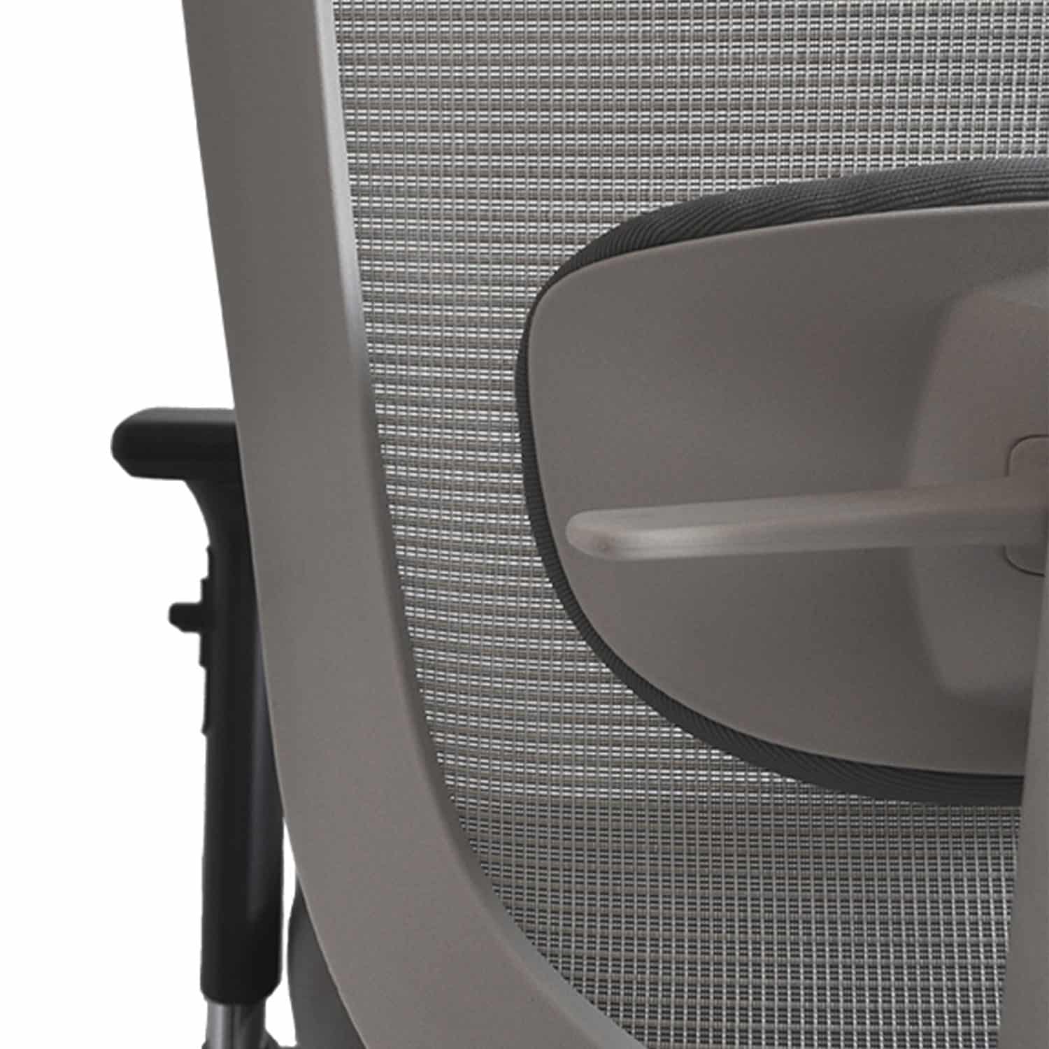 Die Netzrückenlehne passt sich automatisch in der Höhe an und bietet fünf Neigungsstufen, wodurch eine optimale Anpassung der Lendenstütze gewährleistet wird. Diese kann zusätzlich manuell auf die ideale Höhe eingestellt werden.