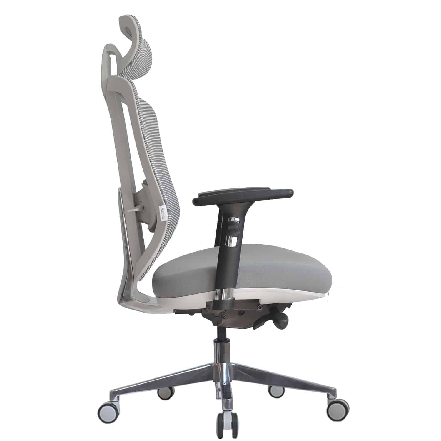 Die Kopfstütze ist in Höhe und Neigung verstellbar. Der Stuhl verfügt über ein hochwertiges Aluminium-Fußkreuz mit Hochglanzoberfläche, das das elegante Design zusätzlich unterstreicht.