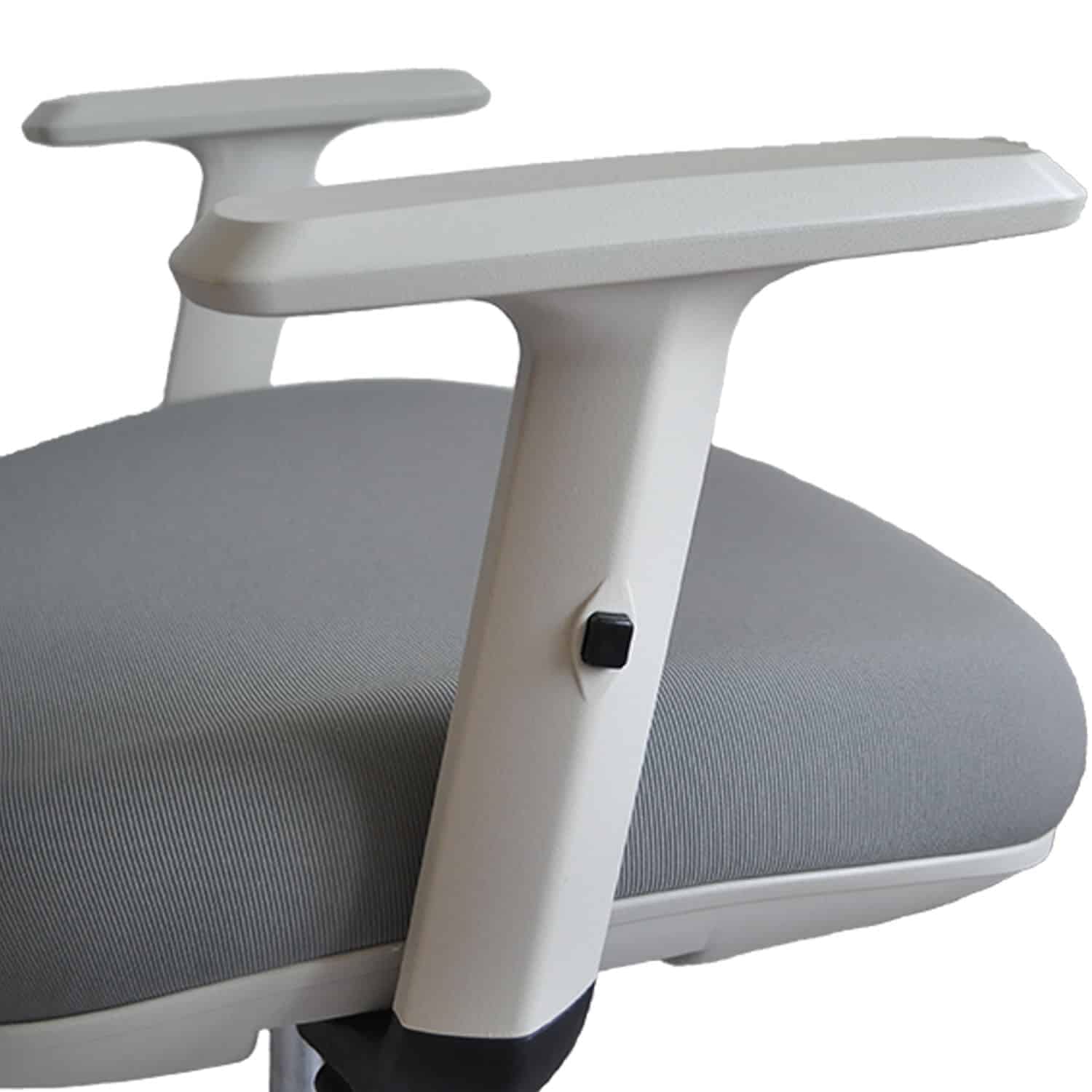 Die Höhe der Armlehnen kann durch Drücken der kleinen schwarzen Tasten an der Außenseite der Armlehnen eingestellt werden.