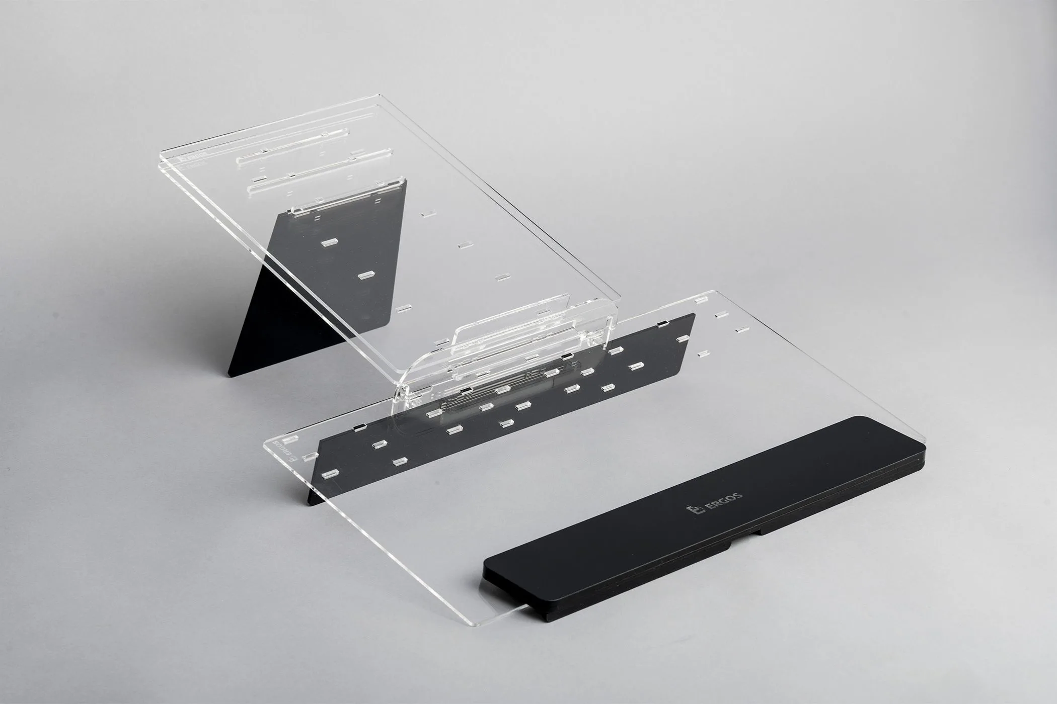 Elitype FLOW 2 ergonomic modular stand with adjustable document holder and keyboard support.
